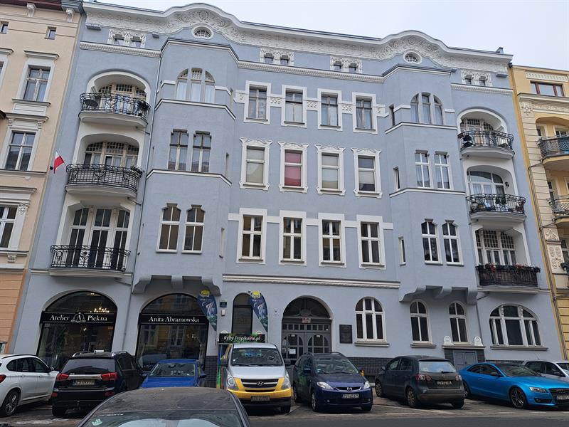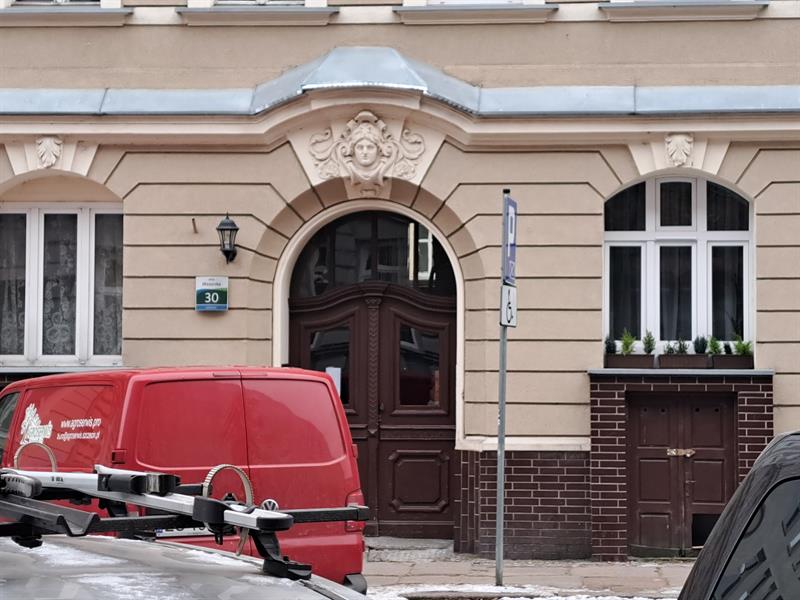 Z kolei w przypadku kamienicy numer 30 razi niechlujstwo. A jeszcze bardziej razi to, że nikomu to nie przeszkadza. Nad eleganckim wejściem do budynku, pracownicy budowlani wyjątkowo niedbale wykonali blaszane opierzenie gzymsu. Koszty poprawki byłyby minimalne. Nie chodzi więc o pieniądze.