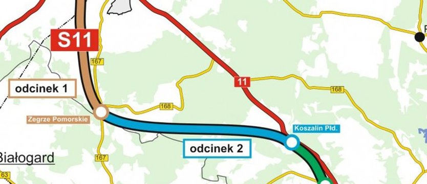 Fragment S11 od Koszalina do Bobolic będzie miał 47,7 km długości. Został podzielony na trzy odcinki realizacyjne: Koszalin – Zegrze Pomorskie (16,8 km), Zegrze Pomorskie – Kłanino (19,28 km) i Kłanino – Bobolice (11,6 km). 1 marca na zaprojektowanie i budowę każdego z nich ogłoszone zostały przetargi. Pierwotny termin składania ofert został wyznaczony na 9 kwietnia, ale ze względu na liczne pytania zainteresowanych oferentów (łącznie złożono ich ponad 2600 – PAP), termin przedłużany był kilkakrotnie.