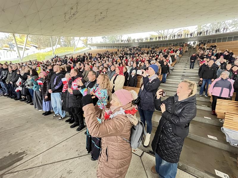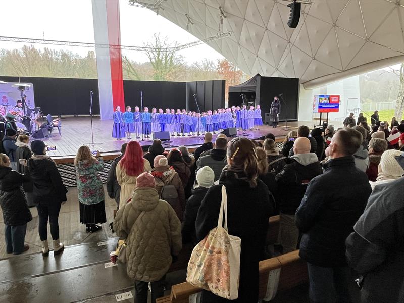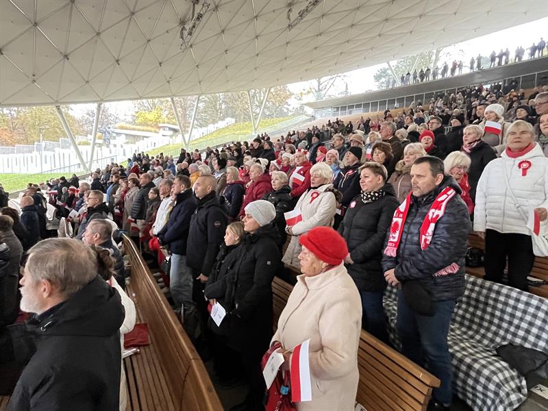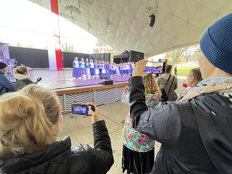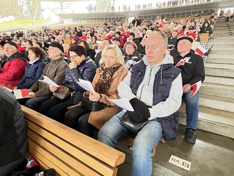 W samo południe w amfiteatrze wybrzmiały więc dobrze znane każdemu Polakowi pieśni, takie choćby jak „My, Pierwsza Brygada”, „Rozkwitały pąki białych róż” czy „Pałacyk Michla”, czyli wojenny hymn harcerskiego batalionu „Parasol”. Zanim jednak „Szczecinianie” wykonali wyżej wymienione patriotyczne utwory, najmłodsza sekcja tego zespołu, razem z publicznością, odśpiewała hymn Polski.
