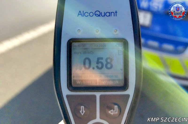Badanie stanu trzeźwości u kierującego wykazało 0,58 mg/l alkoholu w wydychanym powietrzu, czyli ok. 1,2 promila alkoholu we krwi.
