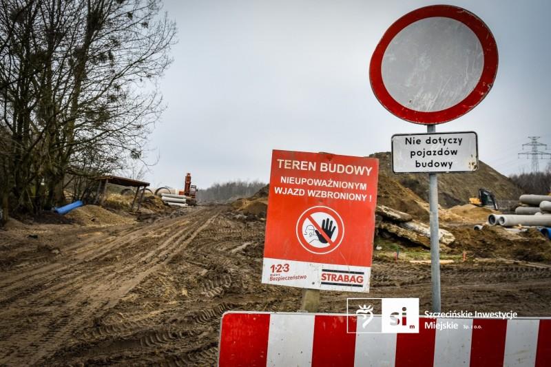 Na terenie budowy prowadzone są prace ziemne i konstrukcyjne, a przez cały dzień porusza się tam ciężki sprzęt oraz pojazdy obsługujące inwestycję. Częściowo wybudowana droga służy obecnie jako dojazd techniczny do kolejnych odcinków i nie została przystosowana do ruchu pieszego. Szczególnie niebezpieczne są obszary, w których prowadzona jest niwelacja terenu oraz głębokie wykopy, niewidoczne z daleka i stwarzające realne zagrożenie dla osób postronnych.