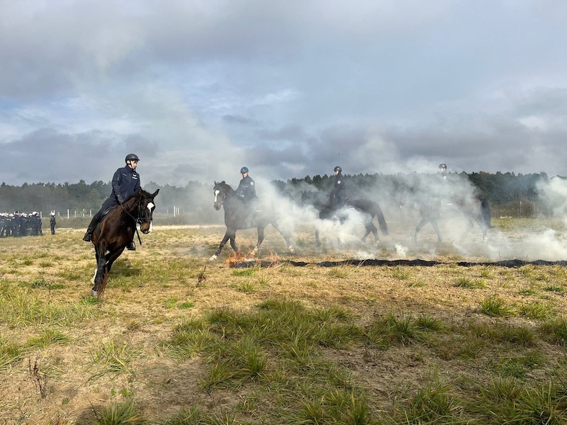 W ramach ćwiczeń przygotowujących do okresowej atestacji koni służbowych przeprowadzono wspólne ćwiczenia z udziałem funkcjonariuszy z Oddziału Prewencji Policji w Szczecinie oraz jeźdźców. Trening obejmował elementy doskonalenia współpracy w sytuacjach wymagających spokoju i dyscypliny, a także reagowania na zagrożenia. Wspólne ćwiczenia sprawdziły gotowość koni do służby oraz potwierdziły ich wysokie wyszkolenie i odporność na czynniki stresowe.