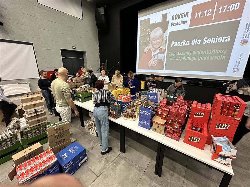 Jak co roku w okresie przedświątecznym wolontariusze spotkali się w sali Gminnego Ośrodka Kultury, Sportu i Rekreacji w Przecławiu, aby przygotować świąteczne paczki dla najstarszych mieszkańców gminy. W tym roku udało się spakować ponad 220 zestawów, które jeszcze przed świętami trafią do wszystkich seniorów w wieku 85+.