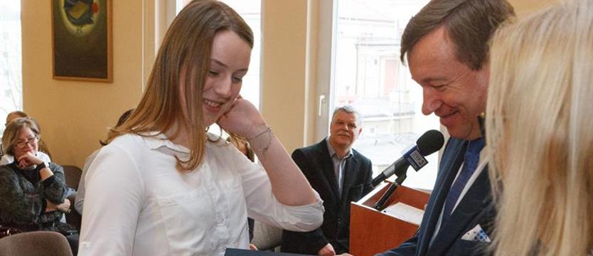 Na zdjęciu u góry: Wiktoria Marcinkowska z Zespołu Szkół nr 6 im. Mikołaja Reja w Szczecinie odebrała nagrodę z rąk wicemarszałka Jarosława Rzepy. „Skubaniec Seweryny” przywieziony do Szczecina przez prababcię Wiktorii to kruche, aromatyczne, idealne na lato ciasto ze świeżymi owocami.
