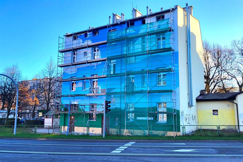 Na kamienicy mieszczącej się przy ul. Słowińców w Kołobrzegu powstaje ekomural. To jedno z jedenastu tego typu dzieł, które ozdobią miasta województwa zachodniopomorskiego.