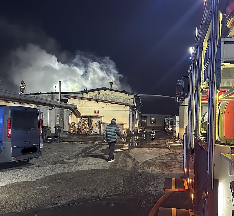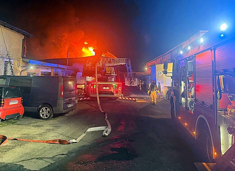 Ogień objął halę produkcyjno–magazynową o powierzchni około 30 na 50 metrów. Na miejscu natychmiast pojawiły się liczne siły ratownicze – łącznie 12 zastępów Państwowej i Ochotniczej Straży Pożarnej oraz