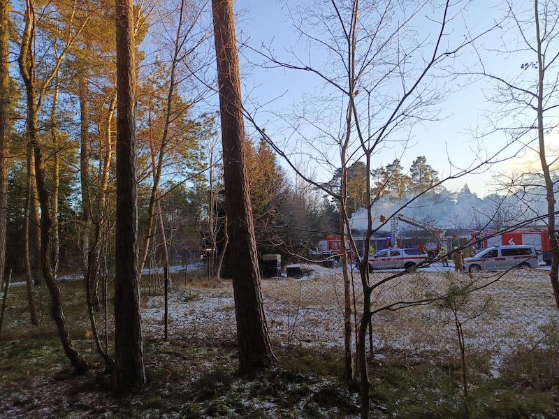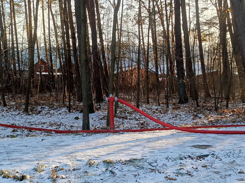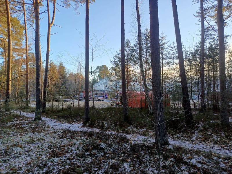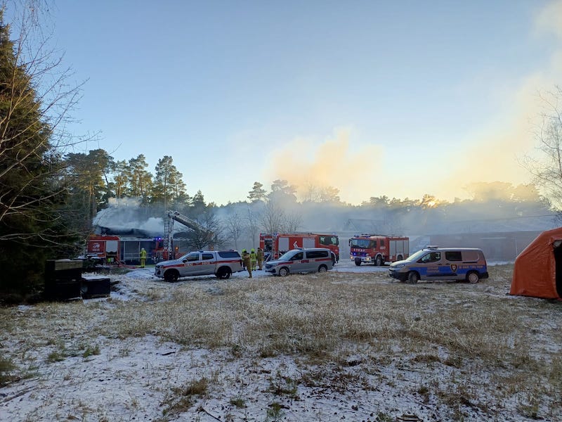 Ogień w ośrodku domków wypoczynkowych we wschodniej części nadbałtyckiej miejscowości zauważono we wtorek przed południem. Akcja gaśnicza trwa.