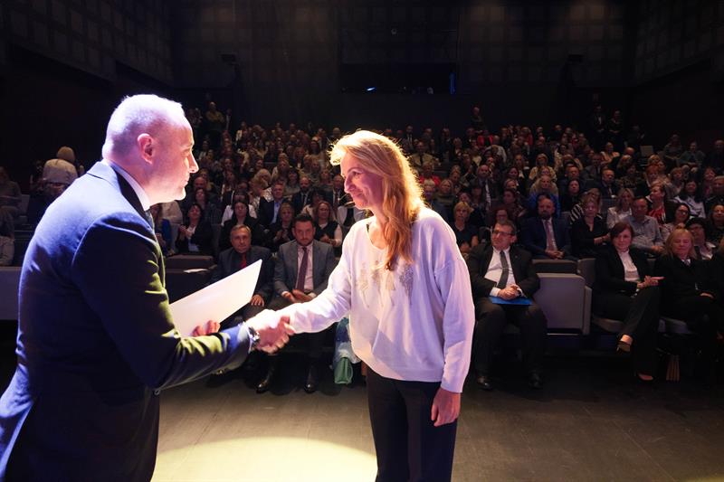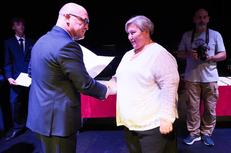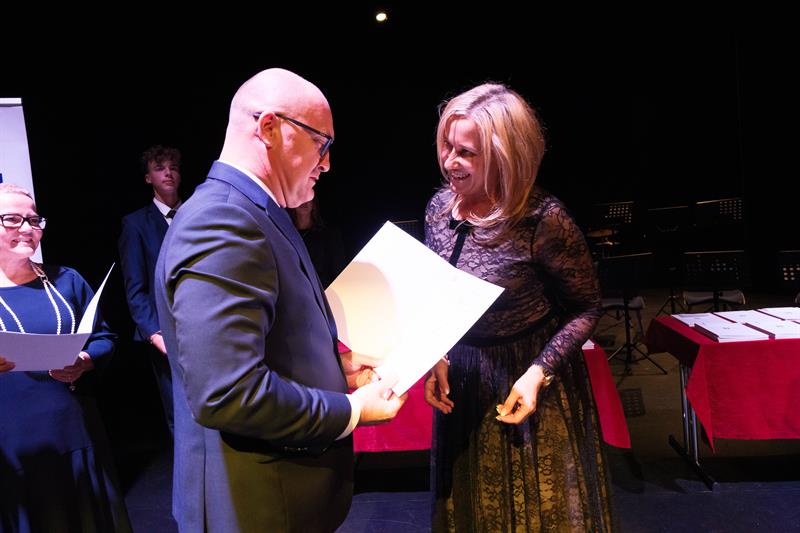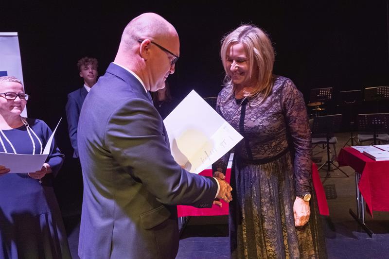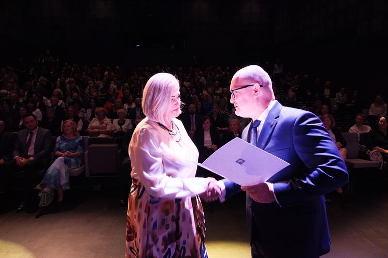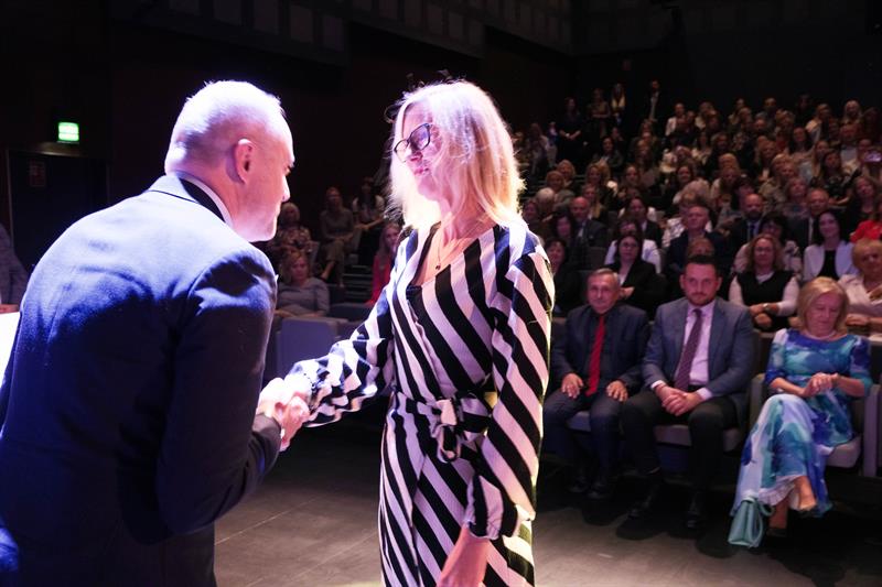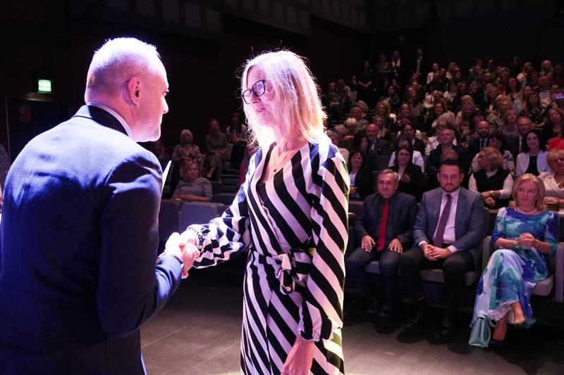 – Te nagrody są wyrazem uznania dla waszej pasji, cierpliwości i zaangażowania. Dziękujemy, że pokazujecie młodym ludziom, iż nauka może być przygodą, a szkoła miejscem spotkania i rozwoju – powiedziała. Decyzją Kapituły Nagrody tytuł Primus Inter Pares 2025 otrzymała dr inż. Agnieszka Raducka z Zespołu Szkół Elektryczno-Elektronicznych w Szczecinie. Od siedemnastu lat z pasją kształci młodzież, łącząc nowoczesne metody nauczania z wartościami, które budują postawy i kompetencje przyszłości. Współpracuje z uczelniami, instytucjami i firmami, dzięki czemu jej uczniowie zdobywają praktyczne doświadczenie oraz odnoszą sukcesy w konkursach i egzaminach zawodowych. Od siedmiu lat zdawalność egzaminów w jej klasach wynosi sto procent. Za swoją działalność była wielokrotnie nagradzana – między innymi przez prezydenta Szczecina i ministra edukacji – oraz uhonorowana Medalem Komisji Edukacji Narodowej.