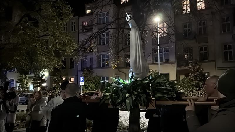 Nabożeństwo fatimskie i towarzysząca mu procesja z figurą Matki Bożej Fatimskiej, jest odpowiedzią na wezwania Maryi do modlitwy różańcowej.