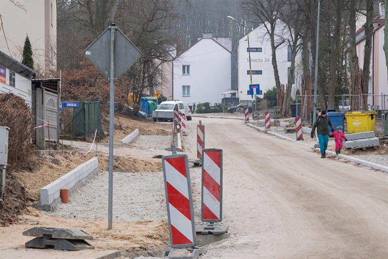 Prace przy przebudowie ulic Krzemiennej i Smoczej zostały czasowo wstrzymane z powodu niekorzystnych warunków pogodowych. Wbrew wcześniejszym zapowiedziom nie doszło jeszcze do zamknięcia odcinka ulicy Smoczej od Falskiego w kierunku mostu autostrady, w rejonie Puszczy Bukowej. Kluczową przeszkodą w kontynuowaniu robót są utrzymujące się ujemne temperatury i głęboko zamarznięty grunt.