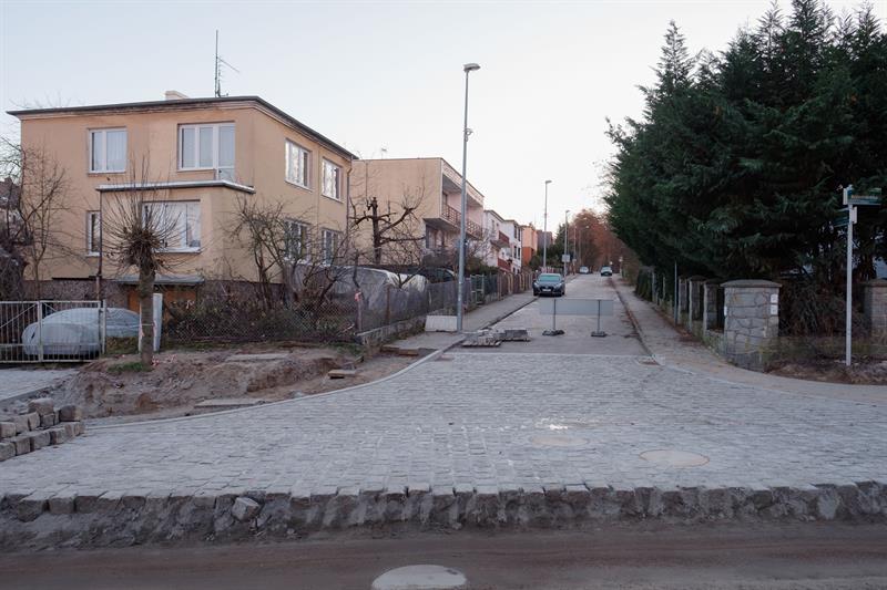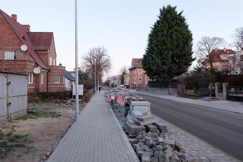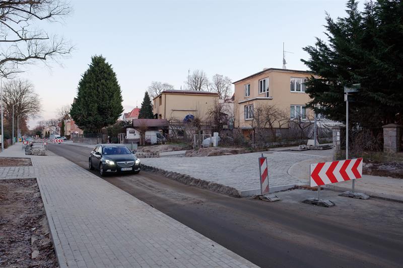 Na odcinku od ul. Floriana Szarego do ul. Skalistej oraz Smoczej częściowo można już przejechać nowym asfaltem. To pierwszy fragment, który pokazuje, jak w przyszłości będą wyglądały przebudowane ulice. Jednocześnie kostka brukowa została ułożona jedynie na krótkich odcinkach – w miejscach połączeń ulic Chełmińskiej, Rudej i Miechowskiej z ul. Krzemienną.
