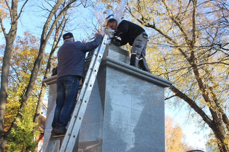 Wymieniono tablicę pamiątkową, a orła poddano zabiegom konserwacyjnym i pomalowano specjalną farbą ochronną. Orzeł jest dziełem znanego rzeźbiarza Wojciecha Banasińskiego z Płotów. Cokół został obłożony estetycznym, lśniącym granitem, który nadał monumentowi powagę i trwały charakter.