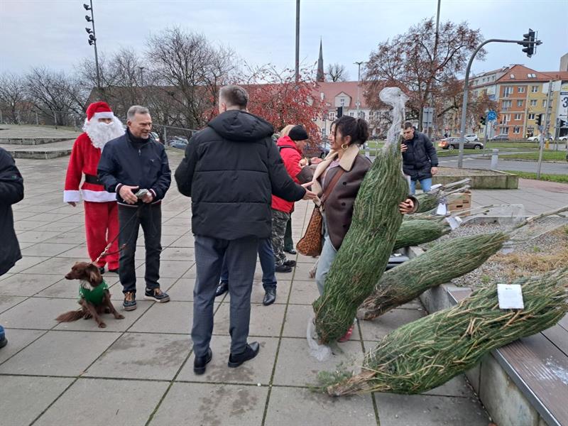 W środę 10 grudnia na placu Solidarności w Szczecinie politycy Polskiego Stronnictwa Ludowego rozdawali wszystkim chętnym świąteczne drzewka. W pakiecie był także słoiczek miodu i sianko na wigilijny stół.