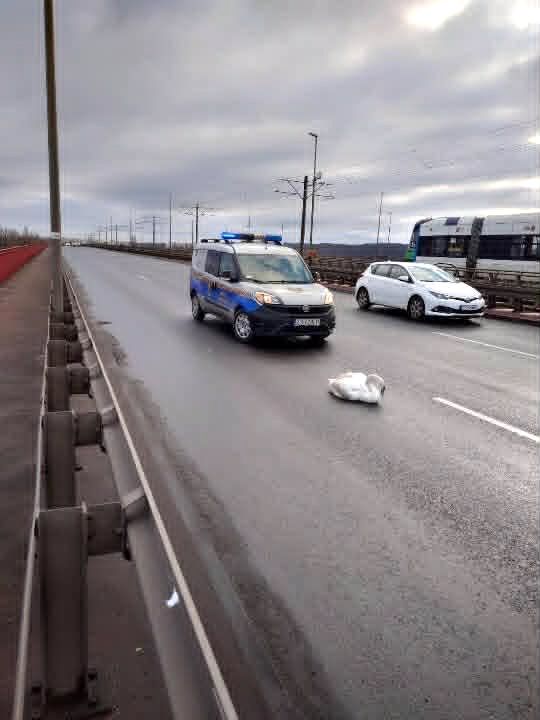 Do niebezpiecznej sytuacji doszło w niedzielę na jezdni Mostu Pionierów w Szczecinie, gdy wyszedł na nią ranny łabędź. Zareagowali na to dwaj strażnicy miejscy, którzy patrolowali okolicę w związku z zagrożeniem stwarzanym przez mróz.