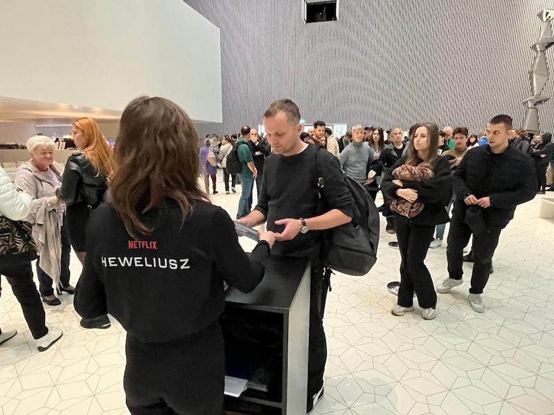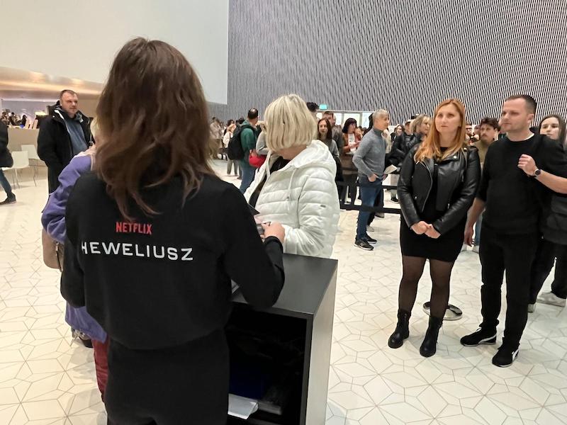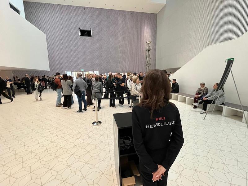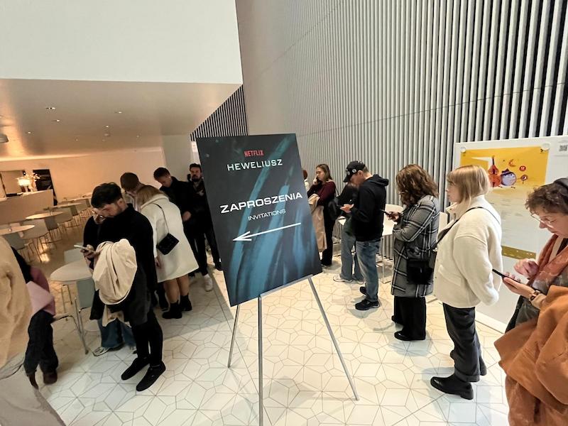 Tłumy szczecinian chętnych do otrzymania bezpłatnych wejściówek na nową produkcję Netflixa odwiedziły dziś Filharmonię im. Mieczysława Karłowicza w Szczecinie. Przedpremierowy pokaz dwóch odcinków serialu Heweliusz rozpocznie się w sobotę 18 października o godz. 17 w Filharmonii. Dzień później projekcja odbędzie się w Gdyni. Po projekcji dwóch odcinków widzowie będą mieli okazję porozmawiać z twórcami serialu oraz aktorami.