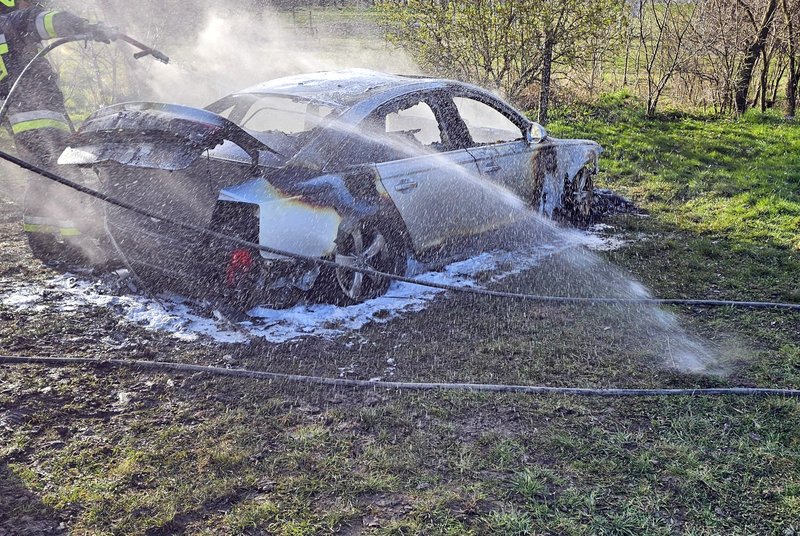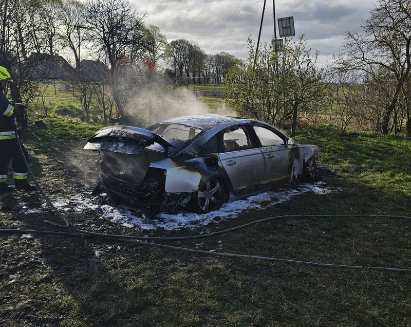 Strażakom udało się ugasić ogień, ale samochód jest kompletnie zniszczony.