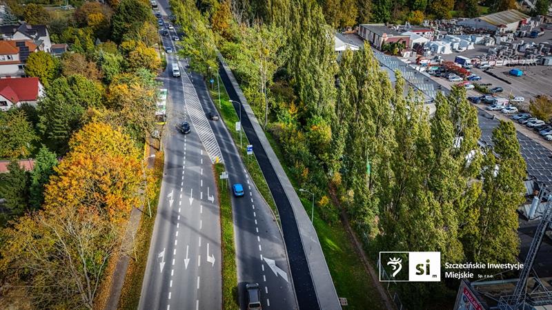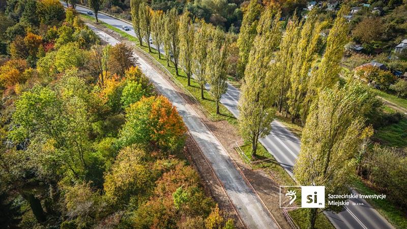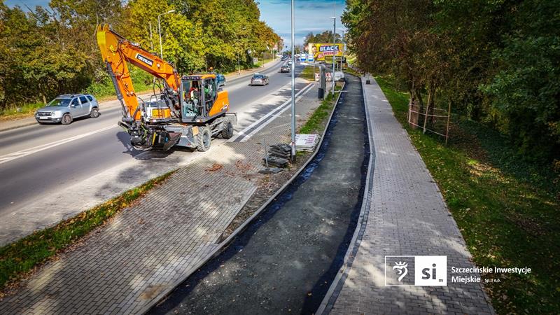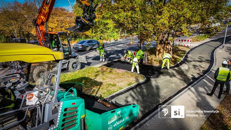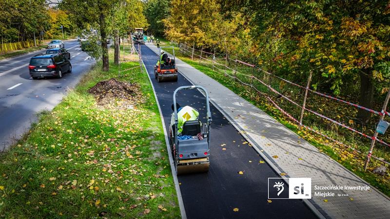 Budowa nowej infrastruktury pieszo-rowerowej wzdłuż ulic Bogumińskiej i Obotryckiej w Szczecinie zbliża się do końca. Ekipy drogowców układają już nawierzchnię asfaltową.