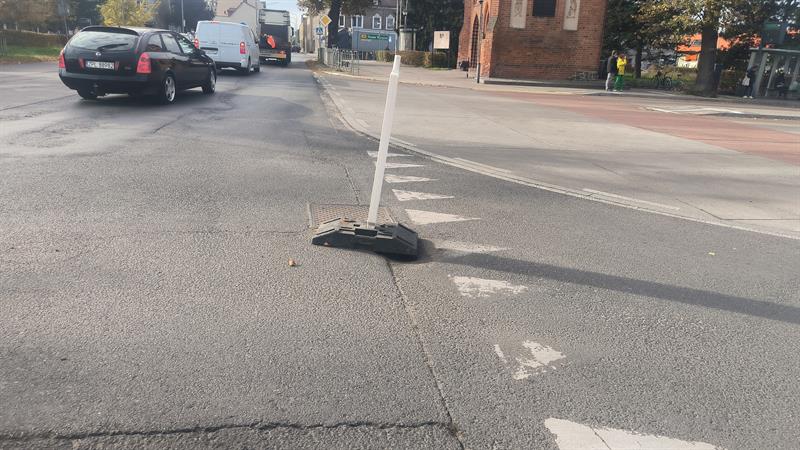Od wielu tygodni na ul. Wojska Polskiego w Policach stoją słupki wskazujące miejsca na jezdni, które kierowcy powinni omijać. Irytuje to mieszkańców, więc coraz częściej w mediach społecznościowych upominają zarządcę drogi, że ten powinien dziury załatać, a nie je oznaczać. Zarządca tłumaczy, że problem nie jest związany wyłącznie z uszkodzeniem nawierzchni jezdni.
