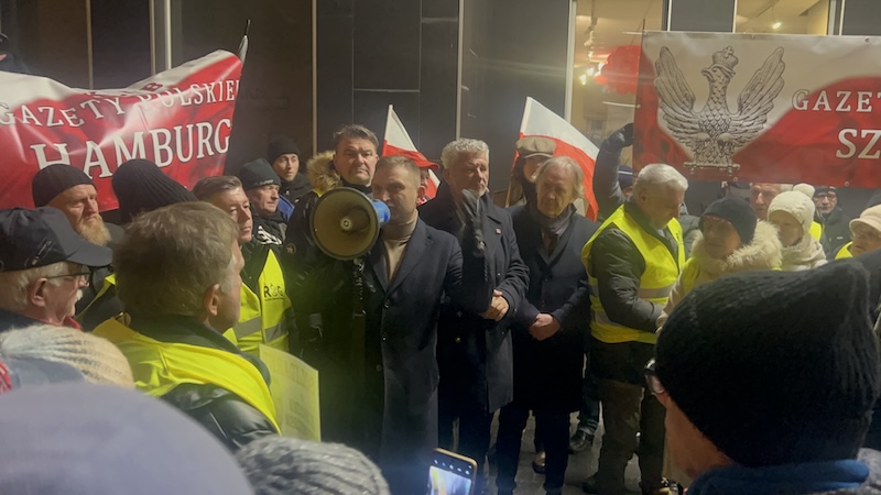 Spotkania jednak nie odwołano. Odbyło się przed wejściem do hotelu przy ul. Druckiego-Lubeckiego.
