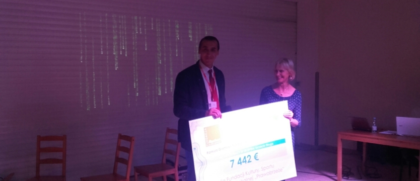 Przekazano czek na 7422 euro. Wręczył Tomasz Jankowik, dyrektor Auchan przy ul. Struga, odebrała Wioletta Smykowska, prezes fundacji Prawobrzeże.