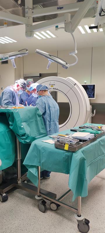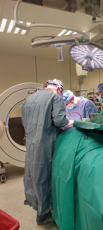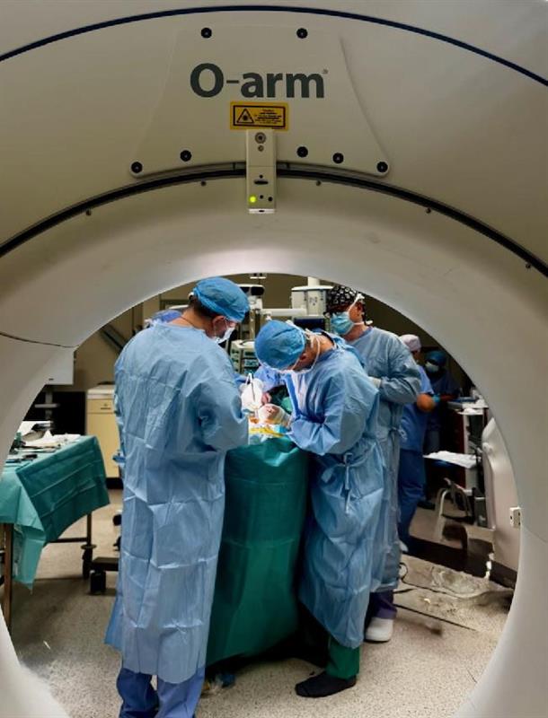 Operacja, polegająca na połączeniu potylicy z kręgosłupem za pomocą śrub, wymaga ogromnej precyzji. Pomaga w tym właśnie tomograf śródoperacyjny O-ARM łączący obrazowanie 2D i 3D z nawigacją chirurgiczną. Operujący mają wszystkie dane w czasie rzeczywistym, w sali operacyjnej, bez konieczności przewożenia chorego do pracowni radiologicznej. Zaletą O-ARM-u jest również niewielka dawka emitowanego promieniowania, przez co jest bezpieczny dla pacjentów i personelu medycznego.