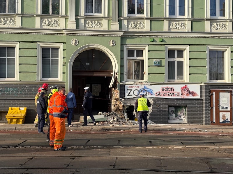 Na miejsce zadysponowano również nadzór budowlany, który sprawdza stan konstrukcji kamienicy, w którą uderzył tramwaj.