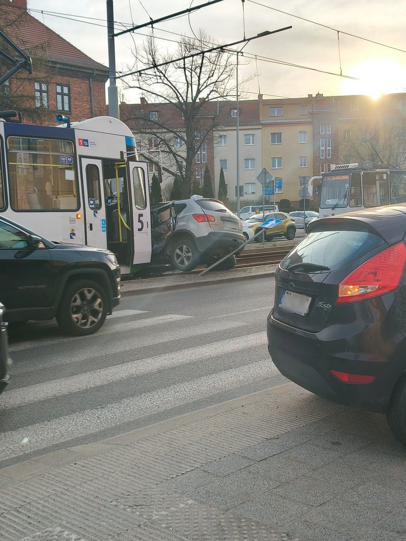 Do zderzenia samochodu osobowego z tramwajem linii nr 5 doszło w piątek po godz. 7 rano na skrzyżowaniu ul. Mickiewicza z ul. Czorsztyńską w Szczecinie.