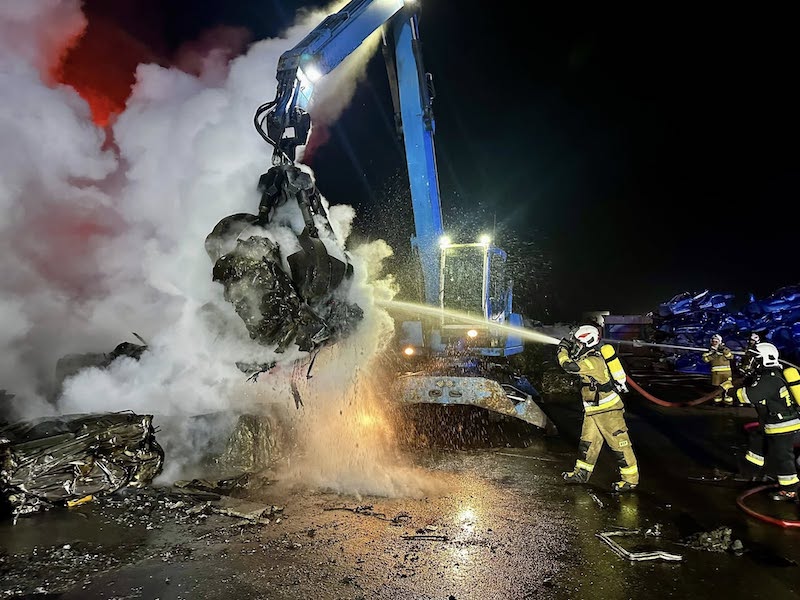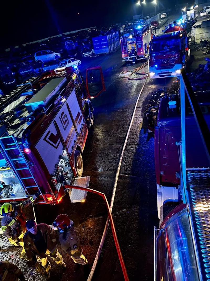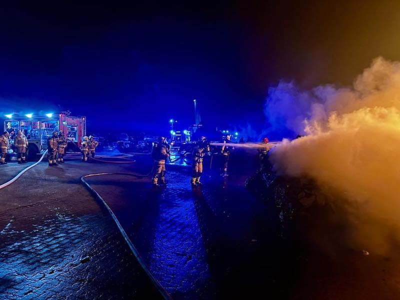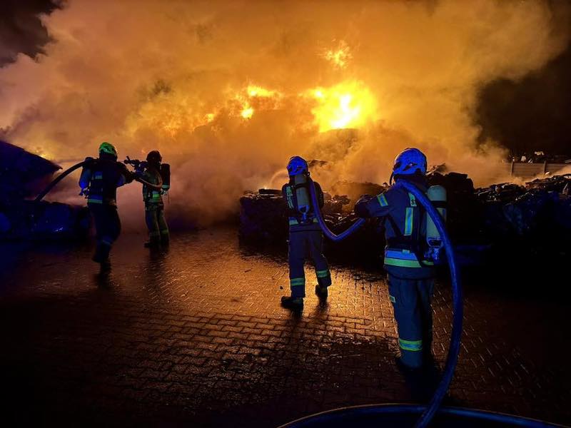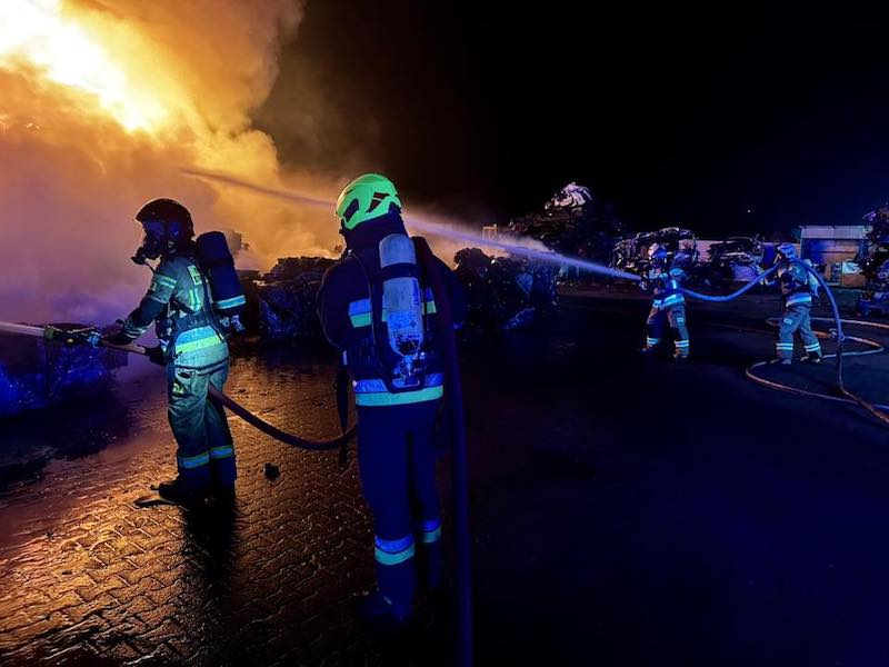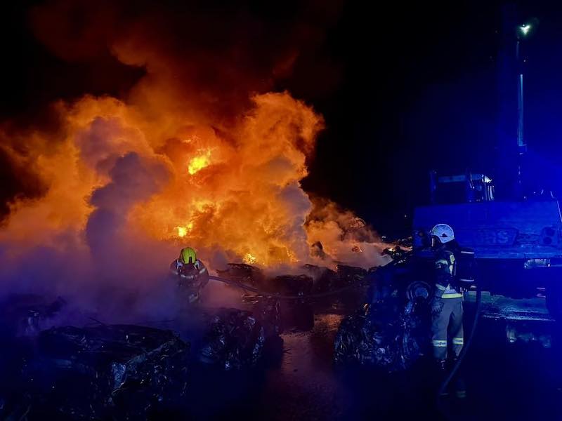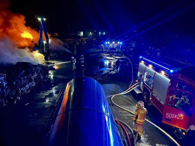 - Paliło się składowisko sprasowanych wraków ułożonych w stosie na wysokość około 10 sztuk w górę. Czyli łącznie około 1000 wraków było objętych pożarem. W działaniach udział wzięło 17 zastępów straży pożarnej. W tym zarówno Państwowa Straż Pożarna, jak i Ochotnicze Straże Pożarne.