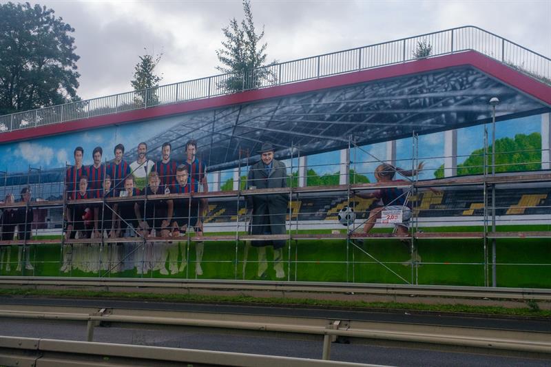 Monumentalne malowidło przedstawiać będzie Floriana Krygiera w charakterystycznym kapeluszu, w otoczeniu młodych piłkarzy szykujących się do meczu. W tle pojawią się trybuny wypełnione kibicami, tworząc symboliczny obraz pokoleń wychowanych przez trenera i sportowej wspólnoty, którą współtworzył.