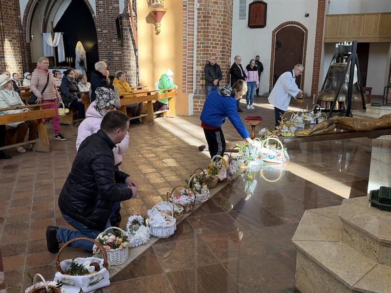 Dziś, w Wielką Sobotę, wierni w całej Polsce licznie uczestniczą w tradycyjnym święceniu pokarmów. Do kościołów przynoszone są koszyczki wypełnione m.in. jajkami, chlebem, wędliną i solą – symbolami życia, dostatku i odrodzenia. Obrzęd ten stanowi ważny element przygotowań do Świąt Wielkanocnych i jest głęboko zakorzeniony w polskiej tradycji. W wielu szczecińskich parafiach święcenie odbywa się co kilkanaście minut, aby umożliwić udział wszystkim chętnym.