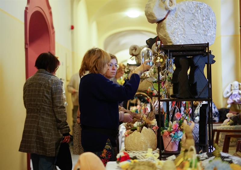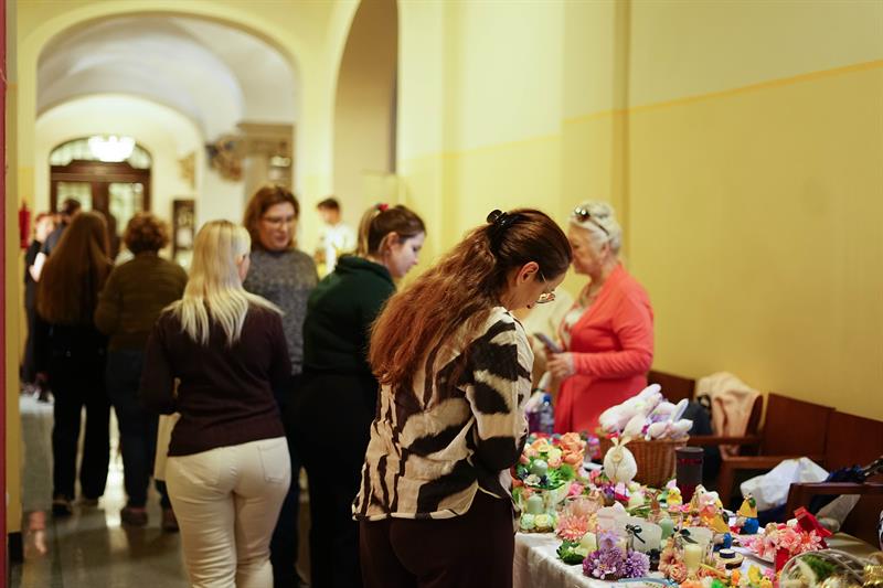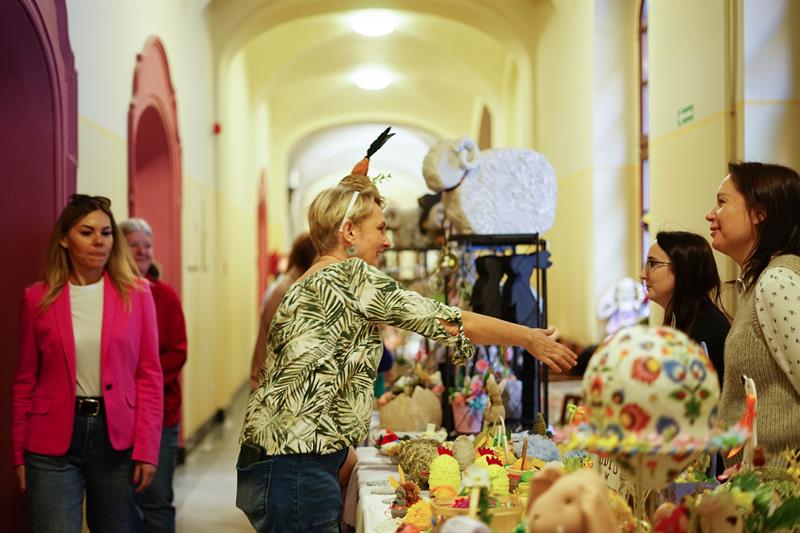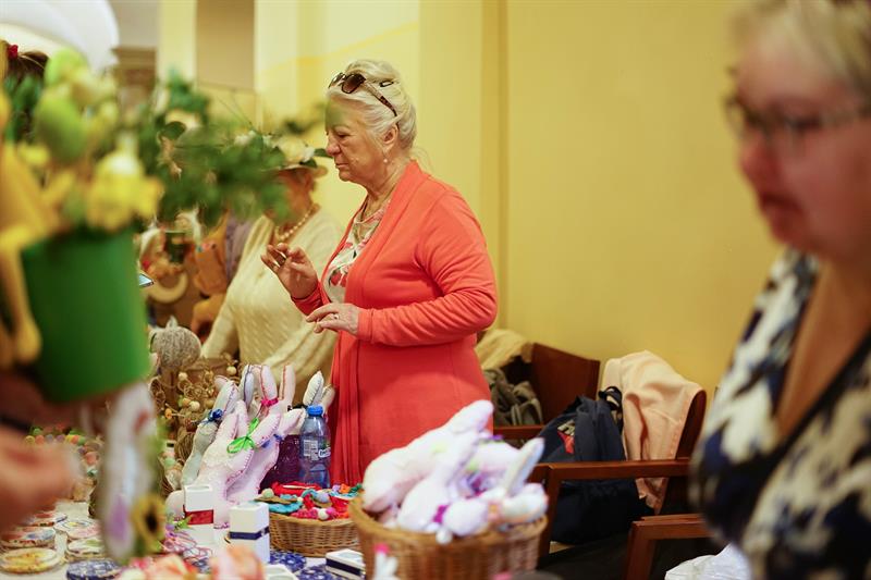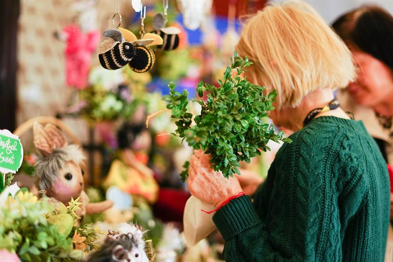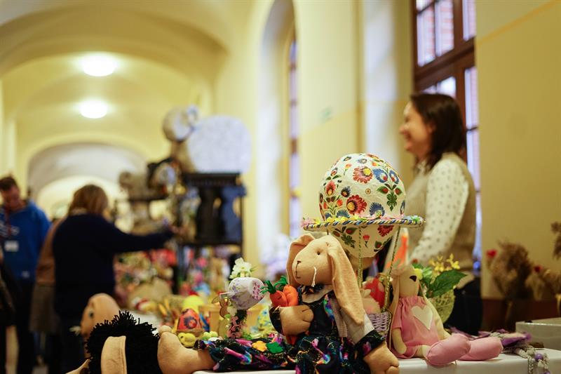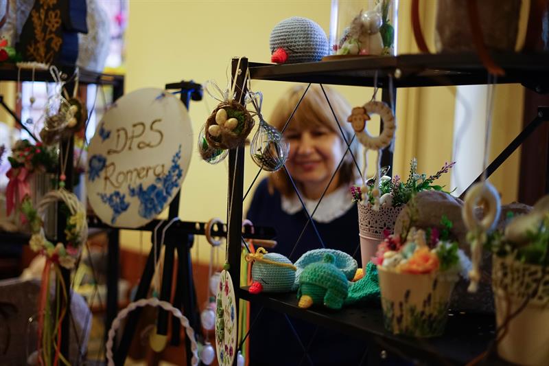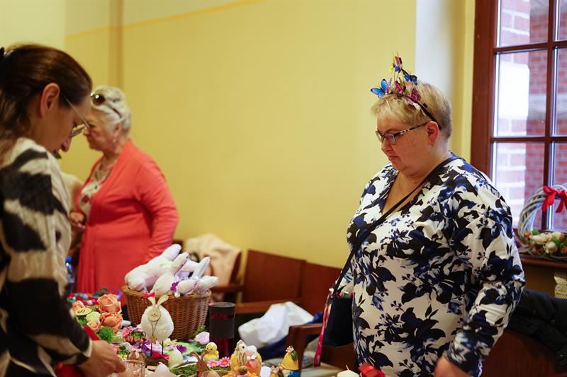 Rzeczy, które można było kupić za niewielkie pieniądze podczas środowego kiermaszu, były niepowtarzalne i jedyne w swoim rodzaju. Wielkanocne stroiki, pluszowe zajączki, porcelanowe jajka, kurczaki z włóczki lub drewna, biżuterię czy kwiatowe kompozycje zrobili specjalnie na tę okazję podopieczni domów pomocy społecznej, domów seniora, organizacji zajmujących się pomocą osobom z niepełnosprawnościami. Wielkanocne ozdoby nie są produkowane na masową skalę, są zrobione przez konkretne osoby, skrupulatnie i od serca. Każda rzecz ma tutaj swoją duszę i za każdą z nich stoi historia jego autora - jak w przypadku kwiatowych stroików i wianków pani Zofii, która radośnie witała klientów przy swoim stoisku, prezentując nie tylko rękodzieło, ale także udekorowany kwiatami kapelusz.
