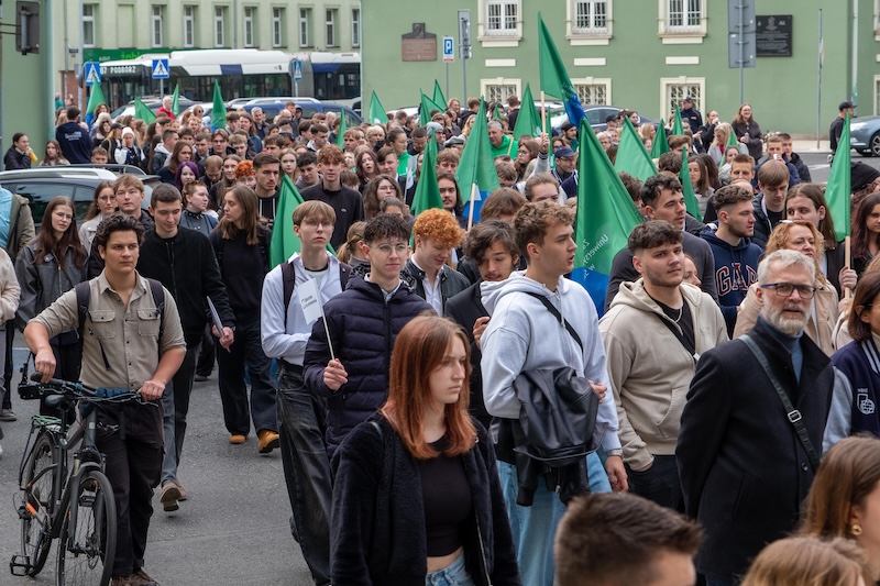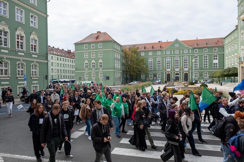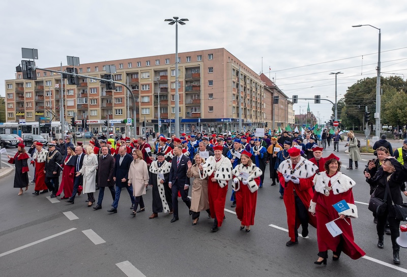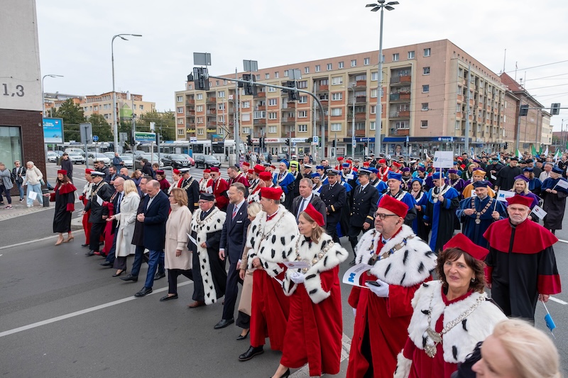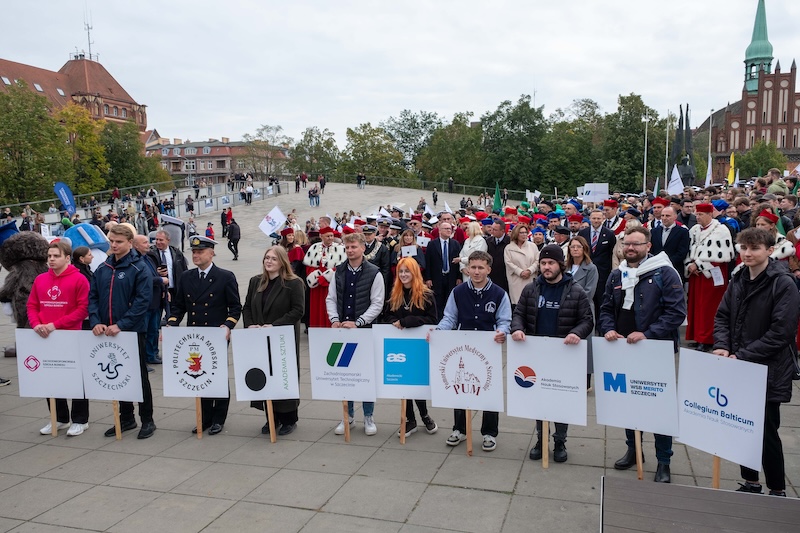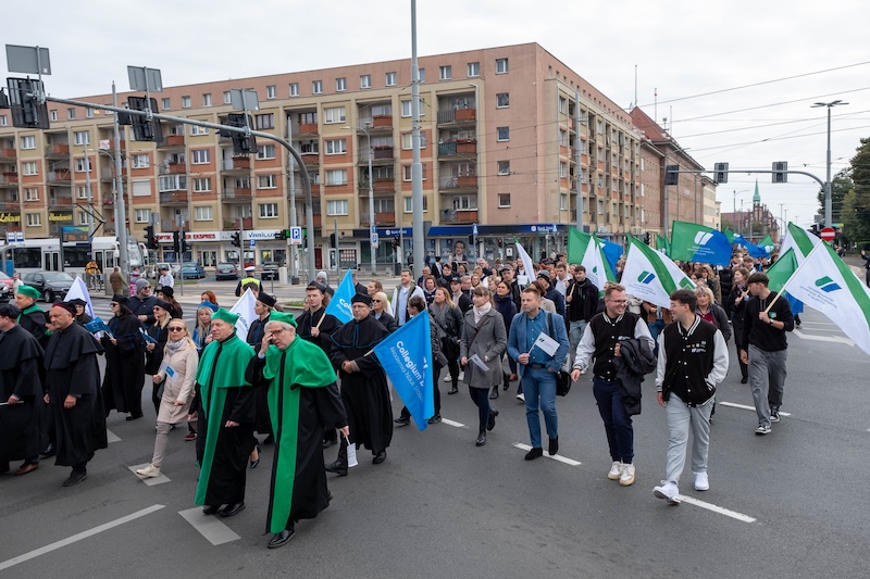 W środę szczecińskie uczelnie po raz pierwszy zorganizowały wspólną inaugurację roku akademickiego. Poprzedził ją przemarsz studentów i pracowników naukowych (oraz psa - robota z Zachodniopomorskiego Uniwersytetu Technologicznego) ulicami Szczecina - z placu Solidarności do Teatru Letniego im. Heleny Majdaniec.