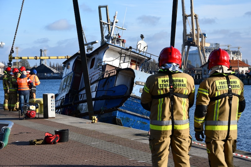 Pierwszy etap operacji podniesienia wraku porzuconego kutra Kehrwieder w świnoujskim Basenie Północnym przebiegł zgodnie z harmonogramem i zakończył się tuż przed zmierzchem. Dzięki współpracy wielu służb oraz zaangażowaniu specjalistów zrealizowano wszystkie zadania zaplanowane na pierwszy etap działań.