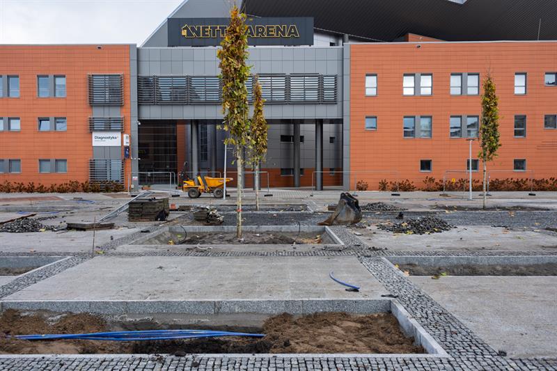 Robotnicy pracują także nad układaniem alejek, które mają połączyć wejścia do hali z terenami rekreacyjnymi wokół obiektu. Pojawiają się pierwsze elementy infrastruktury, a teren z biegiem dni nabiera bardziej parkowego charakteru. Miasto podkreśla, że celem inwestycji jest zwiększenie ilości zieleni i stworzenie przestrzeni, która będzie przyjazna dla mieszkańców i gości wydarzeń sportowych. Efekty prac są już widoczne, a cała inwestycja ma znacząco poprawić estetykę i funkcjonalność przestrzeni wokół Netto Areny. ©℗