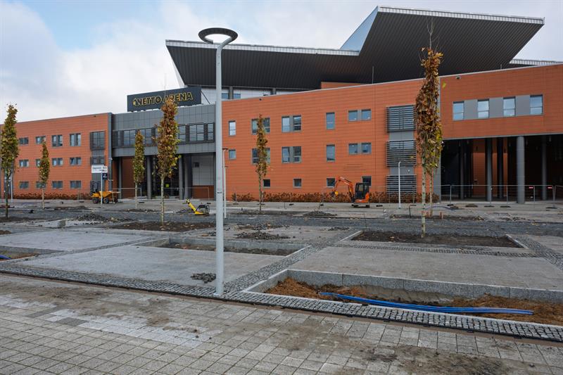 Trwa odebtonowanie okolicy Netto Areny w Szczecinie. Teren wzbogaci się o 24 platany i 10 klonów, ozdobne byliny, trawy, krzewy i rośliny wypełniające zieleńce. To kolejna inwestycja realizowana dzięki Szczecińskiemu Budżetowi Obywatelskiemu.