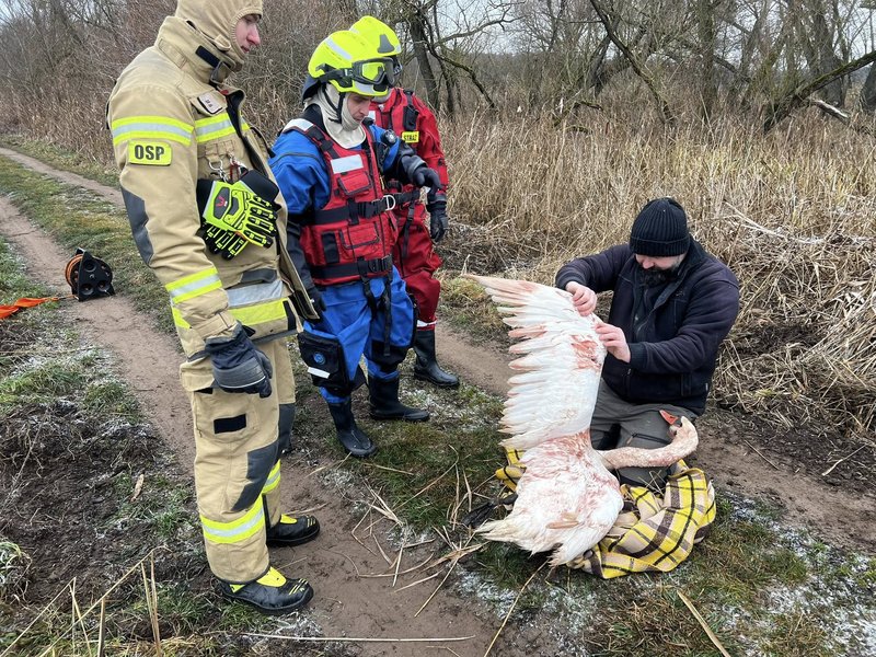 Druhów z OSP Lubczyna zadysponowano do rannego łabędzia, który znajdował się na tafli lodu w kanale w okolicach Inoujścia. O zdarzeniu powiadomił ich rowerzysta, który zauważył zakrwawionego ptaka. Po dotarciu na miejsce strażacy wydostali rannego łabędzia i przekazali go pod fachową opiekę.