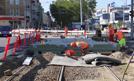 Po rozbiórce starych odcinków torów, niwelacji terenu i wylaniu betonowej podbudowy po nowe szyny u zbiegu al. Bohaterów Warszawy z ul. Bolesława Krzywoustego trwają teraz prace przy układaniu specjalnych profilowanych bloków, będących elementami nowego...