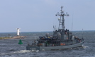 Wiele służb zaangażowano w akcję transportu miny z Zalewu Szczecińskiego na poligon na Bałtyku. Jeszcze przed g. 9 ORP Flaming wraz niebezpiecznym materiałem minął główki świnoujskich falochronów i popłynął w morze. W tym czasie wzdłuż wybrzeża na wyspach...