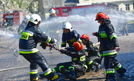 W Przelewicach w Wielkanocny Poniedziałek walczyła damska drużyna straży pożarnej z kolegami strażakami. Oczywiście z mokrą amunicją. Tak wyglądał ten strażacki śmigus-dyngus. Fot. PAP/Marcin Bielecki