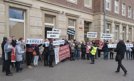 Kilkudziesięciu pracowników sądu protestowało w środę przed siedzibą Sądu Rejonowego Szczecin-Prawobrzeże i Zachód przy pl. Żołnierza Polskiego w Szczecinie. Domagali się podwyżek wynagrodzeń. „Dość pracy za grosze", „Bez nas sądy nie istnieję". Z transparentami...