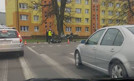 Na skrzyżowaniu ulicy Komuny Paryskiej z ulicą Golisza w Szczecinie doszło rano do wypadku. Samochód osobowy wjechał w skuter. W wyniku tego zdarzenia drugi z kierowców przewieziony został do szpitala. (p) Fot. Piotr Pilecki – Facebook: Suszą! Szczecin