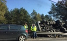Na autostradzie A6 tuż za zamkniętym rozjazdem na Chociwel TiR wypadł z drogi i przewrócił się na poboczu. Zablokowany jest jeden pas ruchu w kierunku na Gdańsk/Świnoujście. Utworzył się kilkukilometrowy korek. (k) Fot. Marcin KUBERA