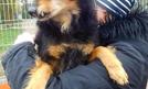 To oryginał o klapniętym uchu. W typie sierści zwanej podpalaną. Z charakterystycznymi „złotymi okularami" wokół wielkich jak spodki brązowych oczu. I jeszcze ten kiełek, zabawnie wystający mu z pyska. Pogodnej natury psiak, a jednak… bezdomny, za kratami...