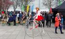 Trwają urodziny Konstytucji RP. W południe na placu Solidarności w Szczecinie rozpoczął się rodzinny piknik z okazji 20. rocznicy uchwalenia ustawy zasadniczej. Na plac wjechała na bicyklu pani ubrana w barwy narodowe pani na bicyklu. są szczudlarze...