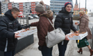Słodko w centrum miasta? W Tłusty Czwartek to możliwe! Z przepysznymi pączkami w okolicach szczecińskiej Bramy Portowej od rana czekali na mieszkańców piłkarze Pogoni Szczecin. Fot. R.PAKIESER