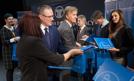 Marian Szyszko (w środku), Okręgowy Inspektor Pracy w Szczecinie, podczas uroczystej gali w Teatrze Lalek "Pleciuga" wręczył dyplomy laureatom konkursów i programów interwencyjych OIP. Te programy i konkursy to m.in. "Zarządzanie bezpieczeństwem pracy...