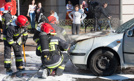 Na pl. Grunwaldzkim w Szczecinie we wtorek po południu w volkswagenie golfie podczas jazdy doszło do pożaru w komorze silnika. Na miejscu interweniowała straż pożarna. (gan) Fot. Ryszard PAKIESER