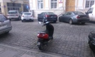 Motocykliści i kierujący skuterami nie płacą za parkowanie w strefie, więc parkują w niej zabierając miejsce innym. Zdjęcie pokazuje klasyczny przykład samolubnego zaparkowania prze kierowcę skutera, którego właściciel zablokował miejsce dla samochodu...