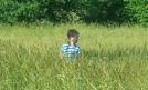 Chłopiec ma 1,2 m wysokości, więc gdy stoi trawa sięga mu ramion. W łąki łanach nikną nie tylko kosze na śmieci, ale nawet ławki przy biesiadnych stołach. To pejzaż znad Jeziora Słonecznego - z Gumieniec - gdzie w niedzielę (5 czerwca) będzie się odbywał...