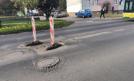 Od wielu tygodni na ul. Wojska Polskiego w Policach stoją słupki wskazujące miejsca na jezdni, które kierowcy powinni omijać. Irytuje to mieszkańców, więc coraz częściej w mediach społecznościowych upominają zarządcę drogi, że ten powinien dziury załatać...